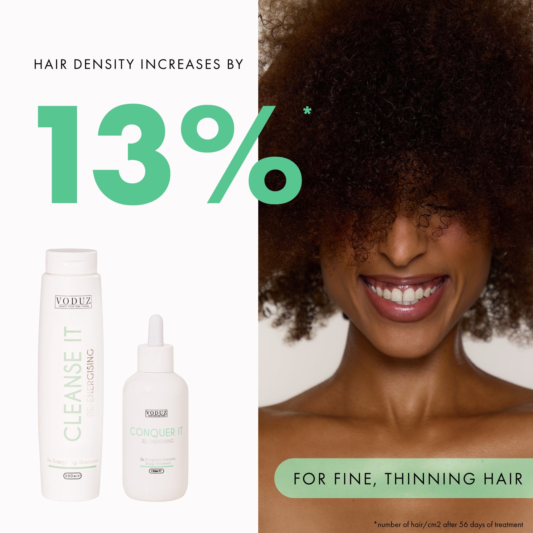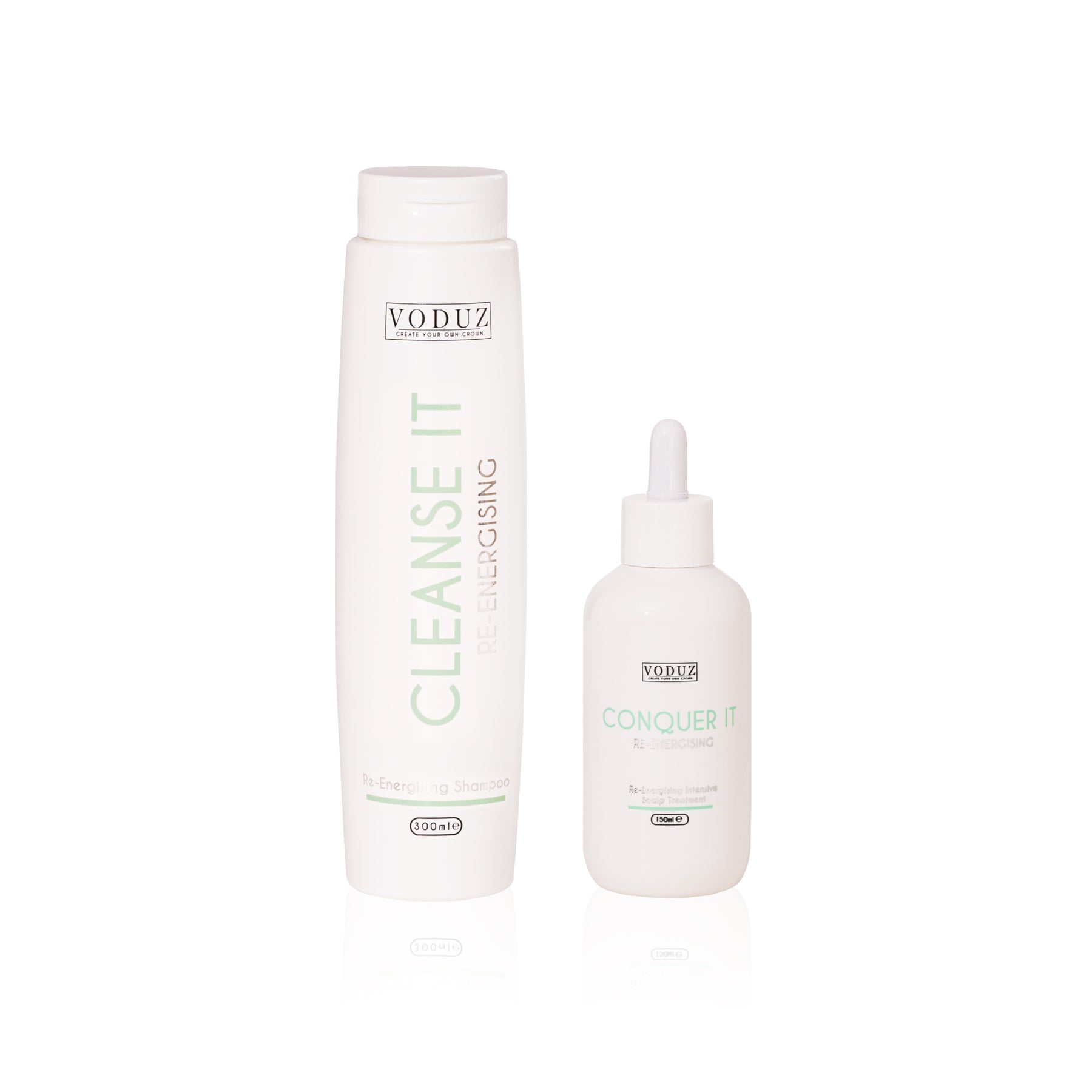 Meet the ‘Re-Energising Duo’ Bundle, your complete reset for tired, thinning or stressed-out hair. This two-part ritual combines the scalp-stimulating ‘Cleanse It’ Re-Energising Shampoo with the potent 'Conquer It' Re-Energising Intensive Scalp Treatment, giving your hair the care it deserves from the very first wash.