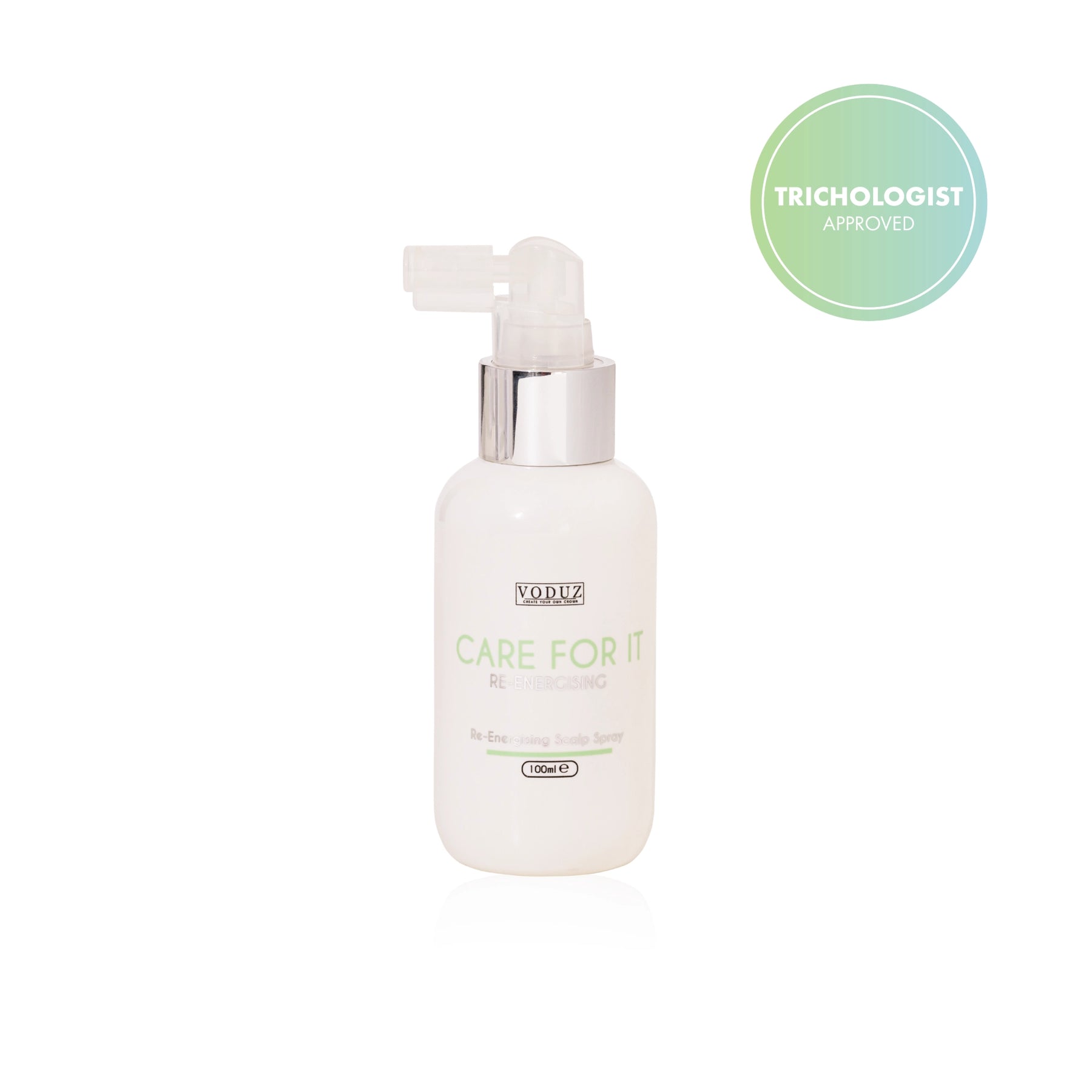Nourish your scalp and revitalise your hair with our 'Care For It' Re-Energising Scalp Spray from Voduz Hair. Formulated with natural extracts including linseed extract and green walnut extract, this spray invigorates your scalp, promoting healthier hair growth and combating dryness.