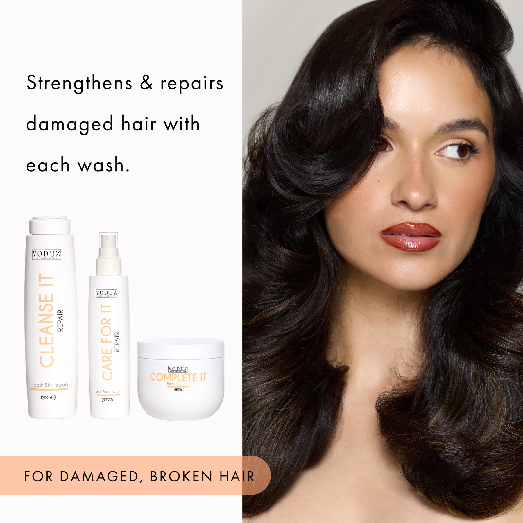 Repair your hair the Voduz way with the complete Repair Range.