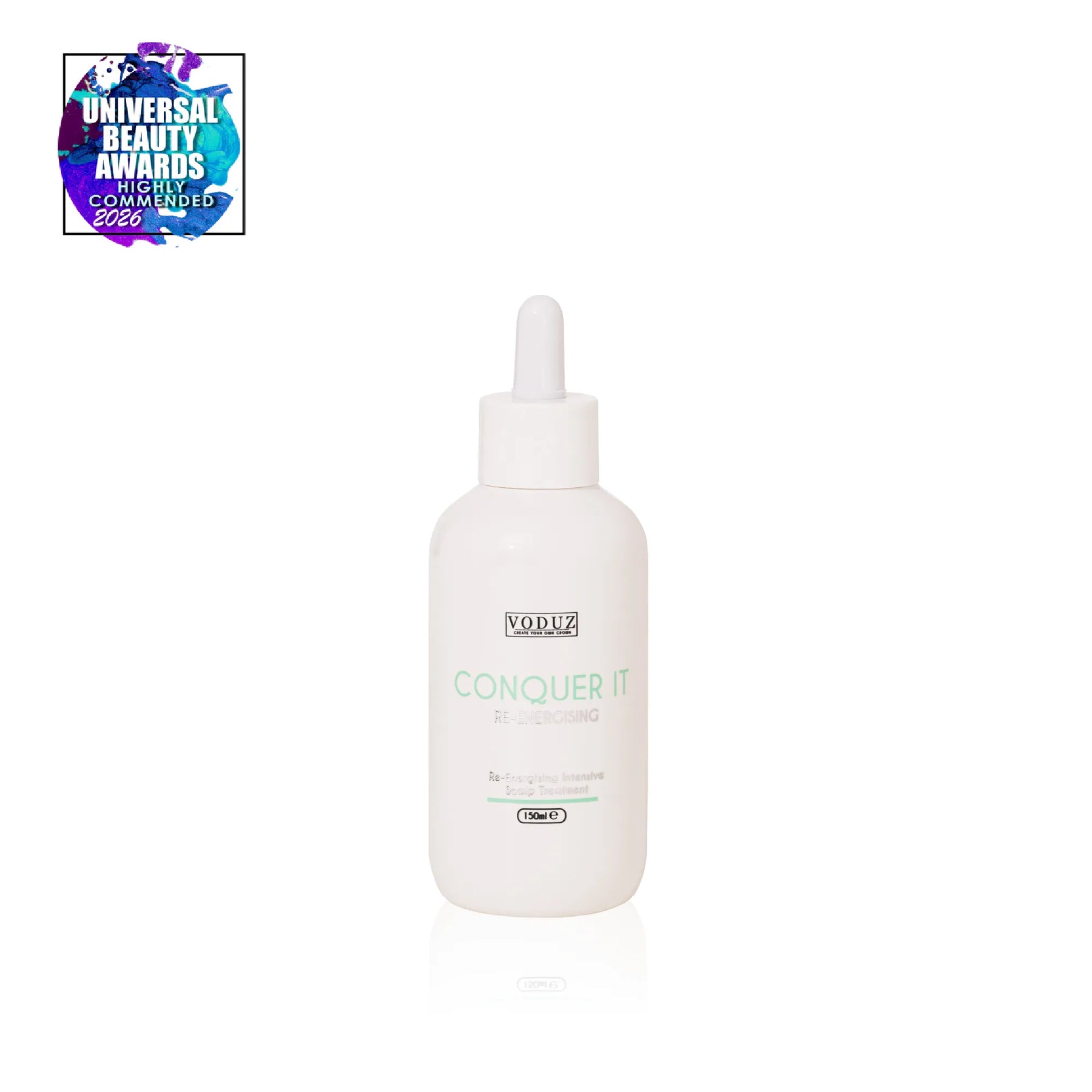 Elevate your hair care ritual with our 'Conquer It' Re-Energising Intensive Scalp Treatment from Voduz Hair. Crafted with a blend of revitalising botanicals, this treatment deeply nourishes and strengthens every strand.