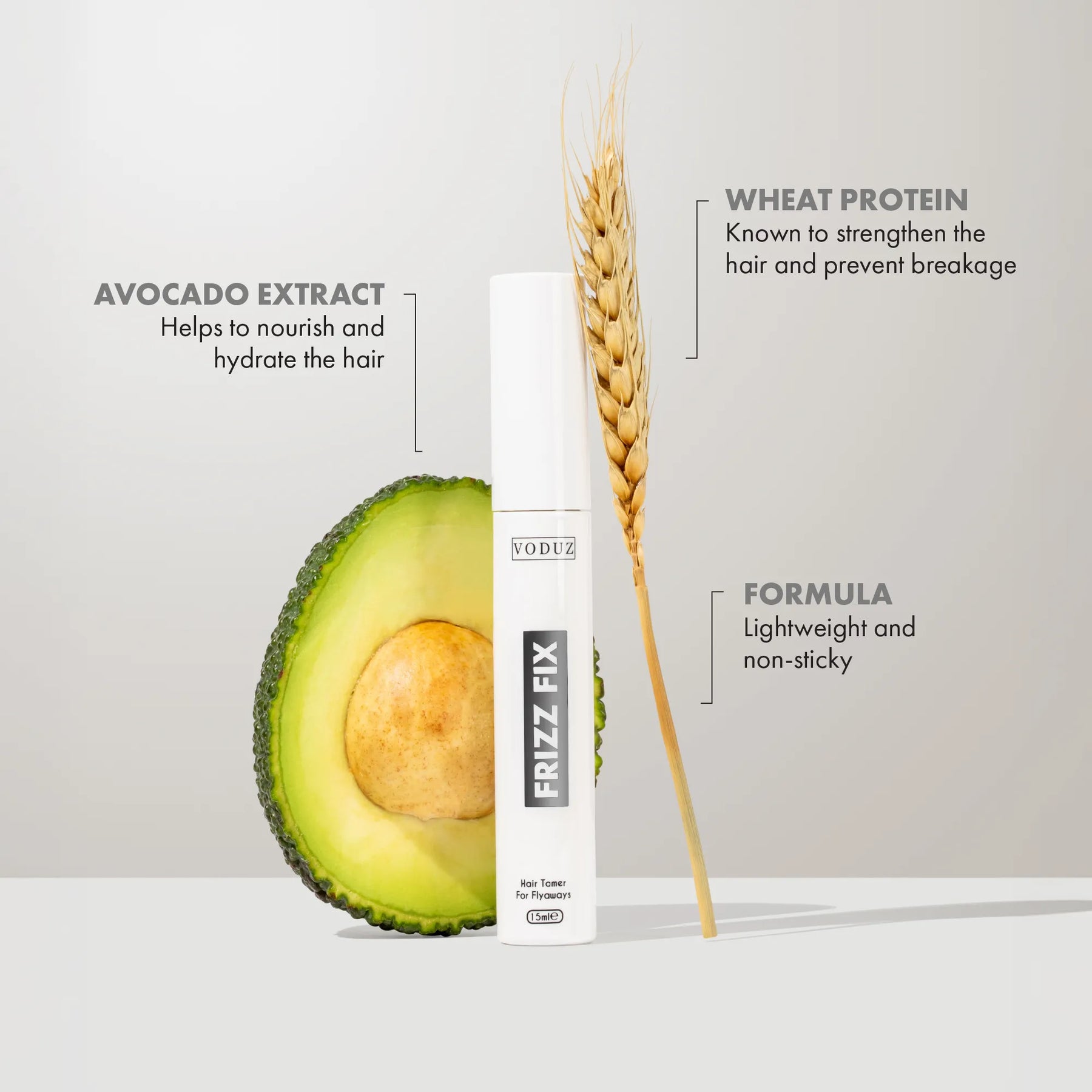 Do you ever catch yourself battling flyaways or frizz just as you’re heading out the door? The Frizz Fix Launch Bundle is your hair emergency kit, carefully designed to give you polished, sleek strands in moments.